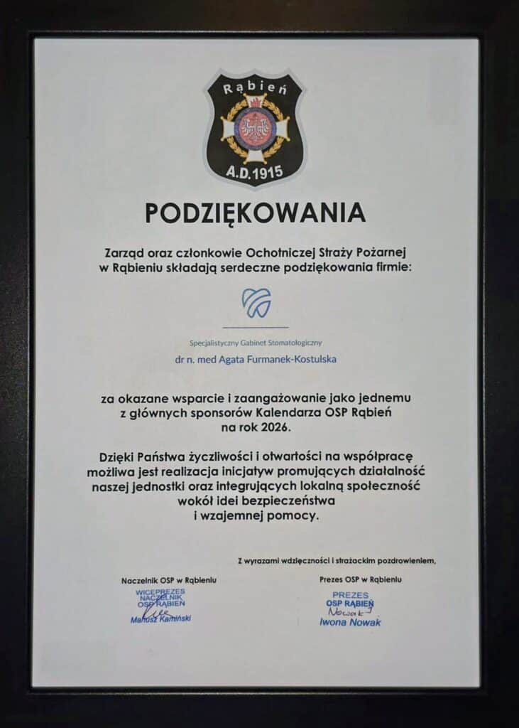 Jesteśmy przeszczęśliwi, że mogliśmy zostać sponsorem Kalendarza OSP Rąbień na rok 2026! To dla nas zaszczyt wspierać tak ważną lokalną inicjatywę i przyczyniać się do rozwoju naszej społeczności. Dziękujemy za piękne podziękowania i jesteśmy dumni, że możemy być częścią tak wspaniałej misji! Cieszymy się, że możemy razem dbać o bezpieczeństwo i wzajemną pomoc! Do zobaczenia!